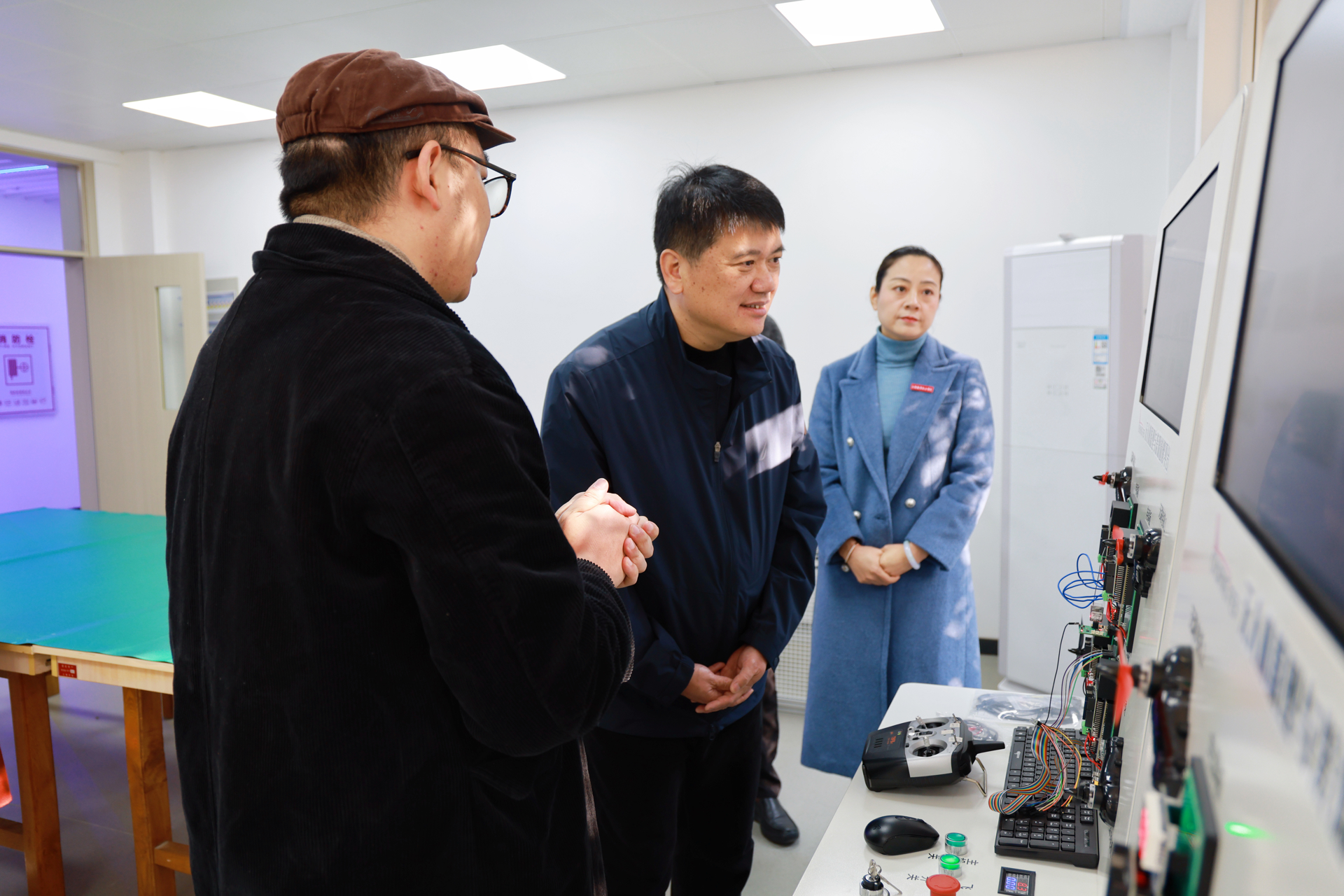 会后,在院领导陪同下,福建华南女子职业学院领导参观了黄色直播 大国工匠工作室、正德航空筑梦育人实践中心、正德—大华无人机综合实训中心、科沃斯检测实训中心等。