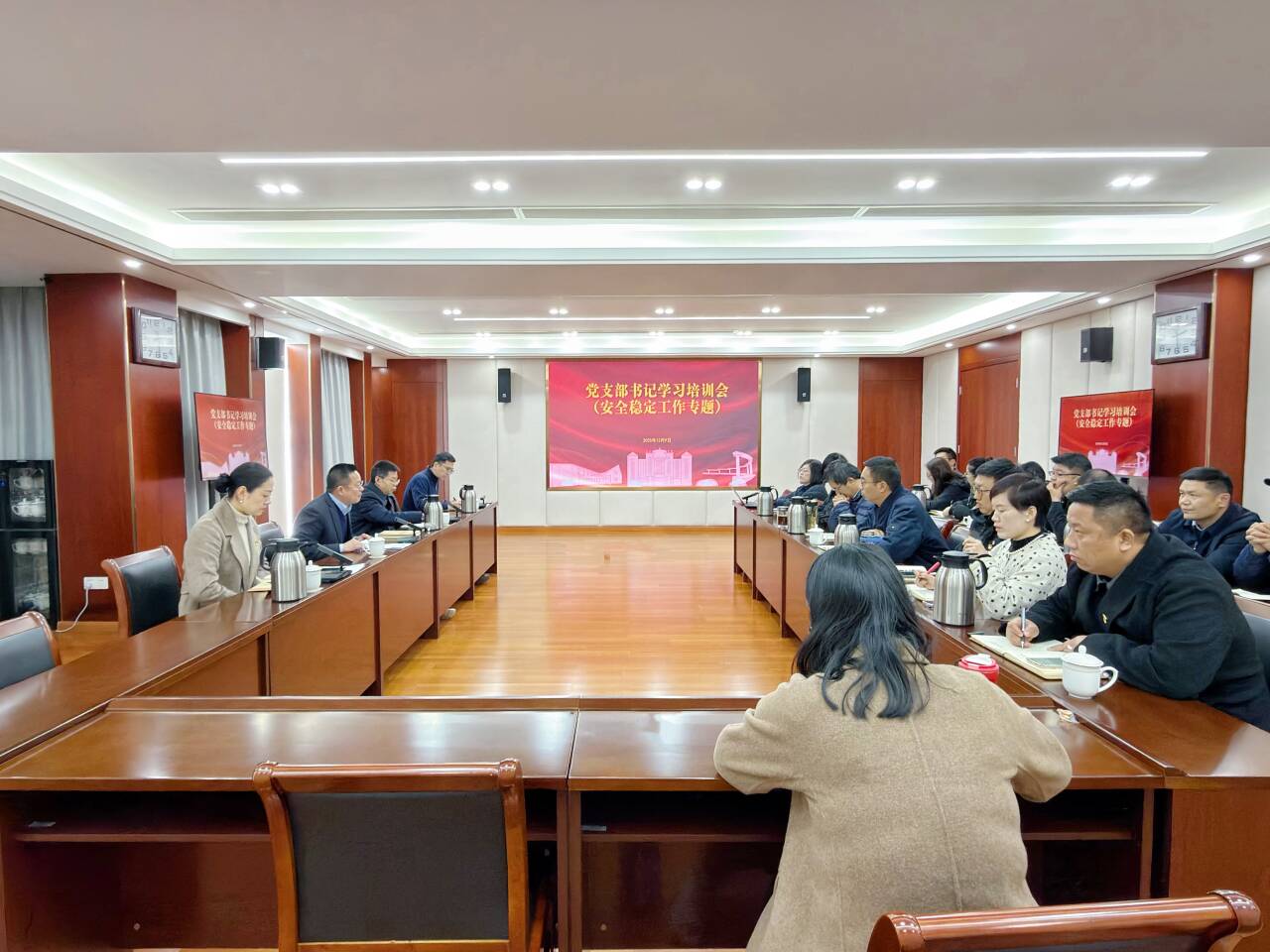 12月9日下午,黄色直播 党支部书记学习培训暨安全稳定工作专题会议在5201会议室召开,院党委书记、政府督导专员孙雷,党委委员、副院长高斌,党委副书记、副院长梁薇,党群工作部、后勤保卫处负责人,全体党支部书记参加会议。会议由孙雷主持。