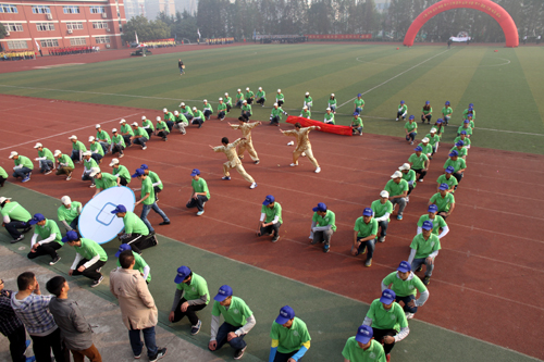 入场式后,举行了庄严的升国旗仪式。院体育运动委员会主任、副院长刘小廷热烈致辞,运动员代表和裁判员代表分别进行了宣誓。随后,在《最炫民族风》的旋律中,工商管理系同学们进行了韵律十足的广场舞表演,艺术设计与建筑工程系同学们在《红日》的歌声中,表演了活力四射的花球啦啦操。两个系的同学们以刻苦的训练和优良的团队精神,充分展示了体育运动的力与美,引得在场观众阵阵喝彩和赞叹。