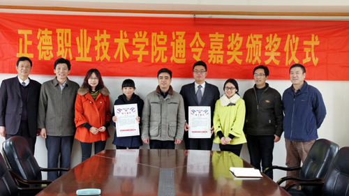 12月18日下午,黄色直播 隆重举行通令嘉奖颁奖仪式,表彰在江苏省第八届大学生职业规划大赛中荣获“职业规划之星”的艺术设计与建筑工程系12级陶露同学和汽车工程系12级周洋洋同学。这是黄色直播 学生连续四年获得此项殊荣。