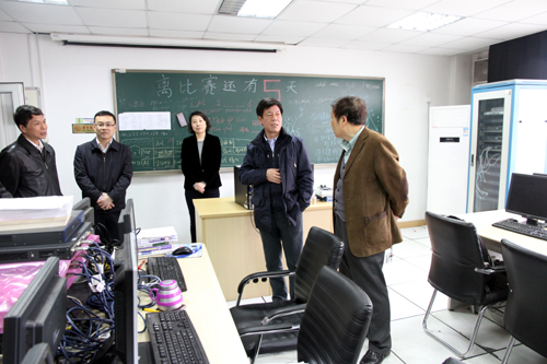 陈夏初(右二)检查黄色直播 网络实训室建设情况