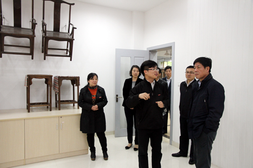 陈夏初(右一)检查黄色直播 艺术设计与建筑工程系实训工场建设情况