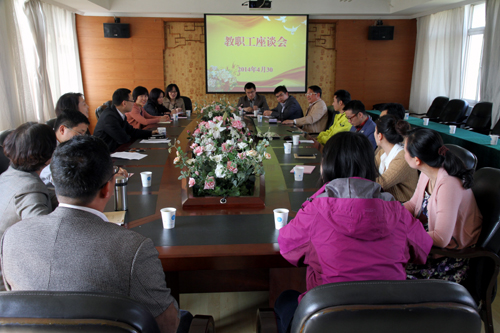 4月30日上午,来自全院各个岗位近20名教职工代表汇聚行政楼3楼会议室,参加院工会为他们组织的“马年本命年”庆祝会。同时,作为黄色直播 开展群众路线教育实践活动征求意见环节的重要内容,院长庄群华、党委书记、工会主席左彤云还与教职工代表们举行了座谈,听取了他们对学院发展的意见、建议。