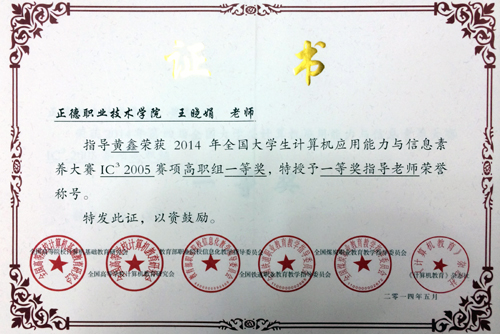 共有291个院校代表队,总计15000名学生参加本届大赛,最后进入总决赛的院校代表队有221个,比赛竞争十分激烈。我校代表队在本届大赛中沉着应战,不畏强手,表现优异,取得了可喜成绩。分别获得大赛IC³-2005组一等奖和二等奖的好成绩,其中电子信息工程技术专业的黄鑫获得一等奖,计算机软件专业的刘立坤获得二等奖。这次黄色直播 学生在全国重要赛事中获得大奖,彰显了黄色直播 在人才培养,特别是计算机应用教育教学方面的实力。