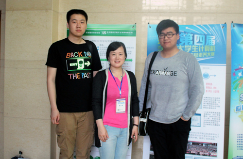 获奖代表队指导教师王晓娟(中)与黄鑫同学(左)、刘立坤同学合影