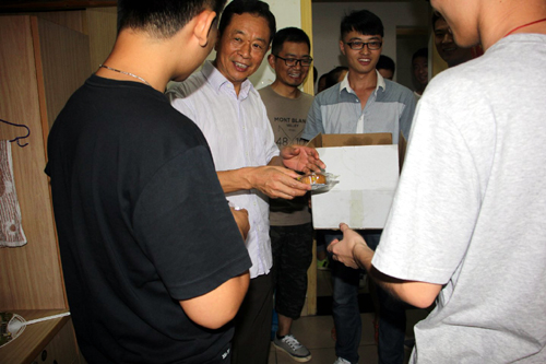 9月7日下午4点半,艺术设计与建筑工程系系领导带领党支部成员和五位新生辅导员及全体辅导员助理60余人,为该系全体留校过节的新生送去了贴有“祝新同学中秋节快乐”字样的特制月饼。系领导们祝福大家中秋节快乐,并祝愿大家大学生活过得愉快而充实,不辜负家乡亲人对自己的期望。辅导员们提醒同学们注意安全,养成良好的作息时间。他们还回答新生的种种提问,并指导新生整理宿舍,教给新同学们大学学生宿舍的生活常识。