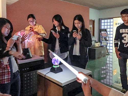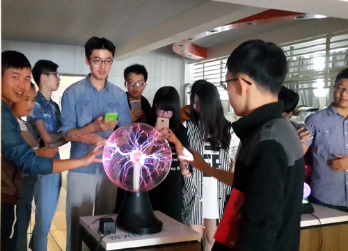 南京航空航天大学物理实验中心展示室里精彩奇特的演示吸引了同学们的眼球,该校专业老师边讲解、边鼓励信息员自己动手参与,同学们对各种实验设备充满兴趣。工程培训中心专业老师的绘声绘色的讲解使得同学们对现代工程训练有了一个全新的认识。