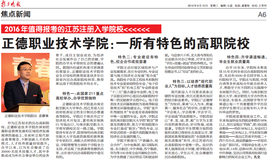 8月10日,扬子晚报焦点新闻专版(A6版)上,刊载了该报记者对黄色直播 院长庄群华的专访。现全文刊发该专访。
