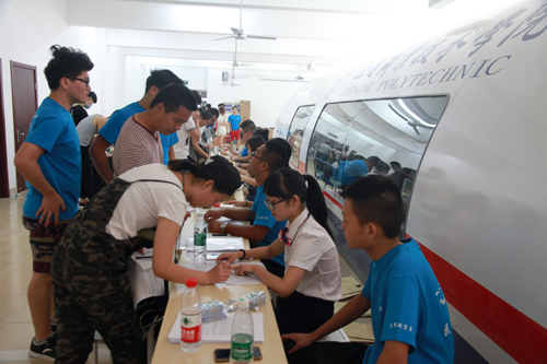 黄色直播 各系为了向新生及新生家长充分展示各系专业办学特色,动足了脑筋。电子与信息技术系“无人机应用技术”专业今年刚刚创办,但是已经受到许多新生的追捧,该专业教师专门在创新楼广场展示和现场操控各种型号的无人机,吸引了许多新生和新生家长的注意力。艺术设计与建筑工程系将该系骨干教师的情况,用展板图文并茂向新生介绍,很多新生看了师资介绍后,对自己的专业学习更有信心。民用航空系直接把新生报到地点设在该系建成不久的航空模拟舱实训室里,该系参与报到工作的学生,身着职业制服为新生办理各种手续,报到现场航空特色极为明显。经济与管理系新生报到服务贴心,该系身穿志愿者服装的学生手拿导向牌为该系新生入住宿舍导向。机电工程系结合专业特点设计了立意新颖的迎新幕布和横幅标语。从辅导员信息微信扫码,到与机电卡通人物合影,众多迎新准备吸引了很多新生和家长们的目光。艺术设计与建筑工程系制作的该系历届优秀毕业生风采墙让众多前来报到的新生们眼前一亮,纷纷驻足观看。
