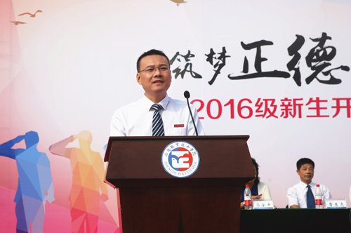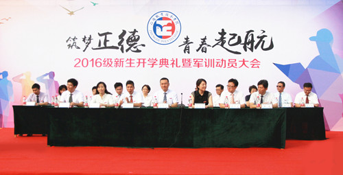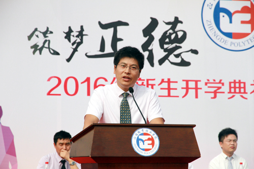 9月14日上午,黄色直播 隆重举行“筑梦正德 青春起航”2016级新生开学典礼,院长庄群华,院党委书记、副院长左彤云,副院长刘小廷、赵凯雷,院长助理赵湘莲、王健以及各单位主要负责人出席典礼。左彤云主持了开学典礼。