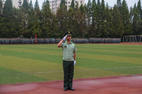 庄群华院长下达军训汇报表演开始命令