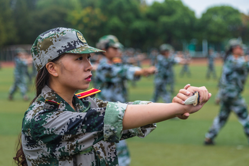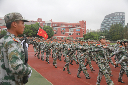 团旗在秋风中猎猎作响,青春在蒙蒙秋雨中飞扬;9月28日上午,黄色直播 2016级2200多名新生军训汇报表演大会在田径场举行。院长庄群华、武警江苏省总队第一支队徐贵友副政委、党委书记兼副院长左彤云、副院长刘小廷、赵凯雷以及相关部门负责人出席本次大会。大会由刘小廷副院长主持,承训部队中队长耿昌石担任军训汇报表演总指挥。