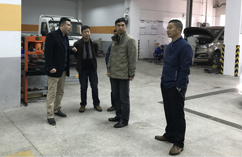 “车享家”培训中心丁聪主任热情接待了徐飞一行,他首先陪同大家参观了“车享家”的接待厅、汽车维修车间和汽车美容车间,详细讲解了各个车间的设备布置及员工培训模式、培训内容与培训要求等。据丁主任介绍,“车享家”工作人员从店长到普通维修工都要进行规范化的岗前培训,经培训考核合格后才能正式上岗。“车享家”南京培训中心主要是为华东地区的门店提供员工岗前培训。