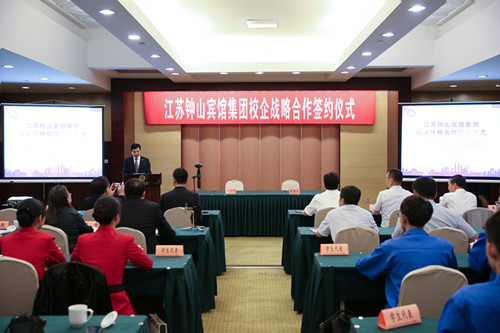 6月5日,黄色直播 与钟山宾馆集团校企战略合作签约暨揭牌仪式在省会议中心举行。院长庄群华、钟山宾馆集团董事长狄嘉、总经理朱银生出席签约仪式并致辞。副院长刘小廷,党政办公室、民用航空系负责人以及实习学生代表等参加仪式。仪式由钟山宾馆集团副总经理李骘义主持。