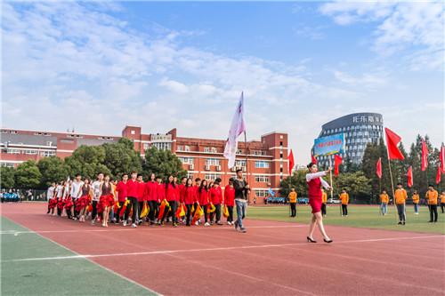 伴随着激昂的运动员进行曲,在校旗校徽、旗手的引领下,由各系学生代表组成的方队依次有序地走向主席台。他们以矫健的步伐、醒目的标语、响亮的口号,行进到主席台前时,他们分别以独具创意的形式,展示了各系的专业特色和同学们的精神风貌。全院教职工方队在各系学生代表方队之后入场,精神抖擞、斗志昂扬,高喊“学真业精、爱生乐教、育人为本、共创辉煌”的口号路过主席台。