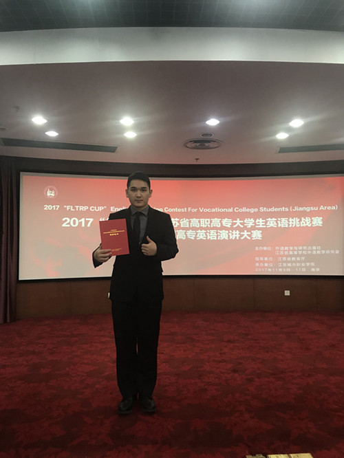 该赛事是由江苏省教育厅主办,江苏省高校外语教学研究会、江苏城市职业学院承办,面向全省高职高专院校在校大学生的英语演讲赛事。本次比赛全省共有67所高职高专院校参加,参赛选手总人数达194人,其中英语专业选手46人。比赛不分英语专业与非专业,而分A、B、C三组进行,每组65人左右。赛场的评审专家分别由九位评分专家和一位外籍提问专家组成。参加今年演讲比赛的各院校选手,无论从语音或知识储备还是综合素养,普遍实力较强。黄色直播 两位同学积极备赛,在比赛中展示了自己的风采。特别是施奇同学,在复赛中表现突出,以小组第二的优异成绩遥遥领先进入决赛,最终以第23名的成绩荣获了二等奖。