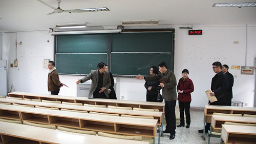 11月29日下午,市人社局财务和基金监督处副处长彭招文、机关纪委副书记张航天,市财政局社保处副处长肖桦,市人事考试中心主任苏真等一行7人来黄色直播 检查验收标准化考场建设工作。黄色直播 副院长赵湘莲、院长助理王健、财资处处长梁飞、教务处处长王俊、后勤处处长查理、职培中心副主任王珊珊及项目施工单位等相关负责人参加了验收汇报会,会议由院长助理王健主持。