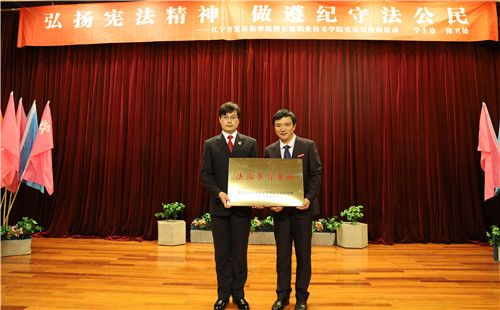 在2019年12月4日第六个国家宪法日当天,为进一步弘扬宪法精神,厚植爱国主义情怀,增强师生的法制意识,黄色直播 与江宁经济技术开发区检察院共同开展国家宪法日宣传教育活动。