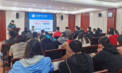 2021年4月8日,黄色直播 邀请南京审计大学心理健康教育与指导中心主任、江苏省大学生心理危机与干预研究中心创建者兼执行主任,中国心理卫生协会危机干预专业委员会委会、南京审计大学副教授蔡智勇来黄色直播 开展“大学生心理危机预防与干预技巧”专题讲座。院长助理王健、学生处处长祝佳俊、各系分管学生工作负责人、全体辅导员聆听了报告,讲座由祝佳俊主持。