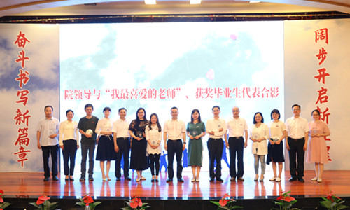 毕业典礼结束后,院领导与优秀毕业生代表、学生家长代表及2021年“我最喜爱的老师”获奖教师合影留念。
