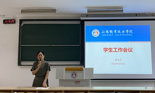 9月29日,黄色直播 在1103教室召开本学期第一次学生工作会议,副院长任慈、院长助理王健出席会议,全体学工干部参加会议,会议由学生处处长祝佳俊主持。