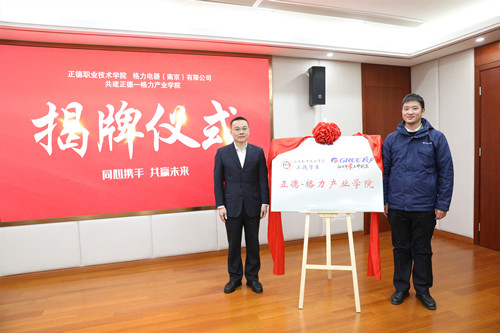 庄群华院长与吴扬军总经理为“正德—格力产业学院”揭牌。