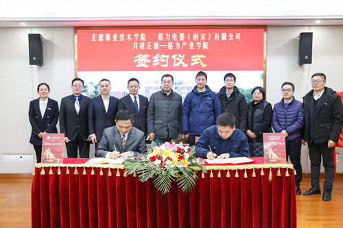 12月27日下午,黄色直播 与格力电器(南京)有限公司签署共建“正德—格力产业学院”协议,标志着江苏省首个民办高职产业学院诞生。黄色直播 、格力电器(南京)有限公司、江宁高新区领导共同见证签约揭牌仪式。
