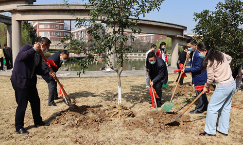 春回大地花千树,万物勃发绿盎然。3月11日上午,在第44个植树节之际,黄色直播 开展“创建绿色学校 建设美丽家园”植树节活动,院长庄群华、党委书记孙雷带头参加义务植树活动,副院长江爱华、赵凯雷、任慈参加活动。