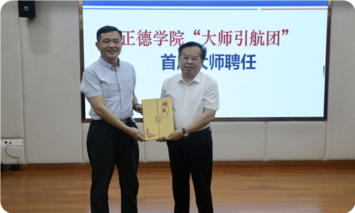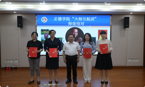 现场进行了首批“大师引航团”师徒结对仪式,“大师引航团”首席大师王成华教授为经管系主任王燕、汽机系主任任丽君、艺建系教师花卉、电信系教师刘佳颁发结对证书。