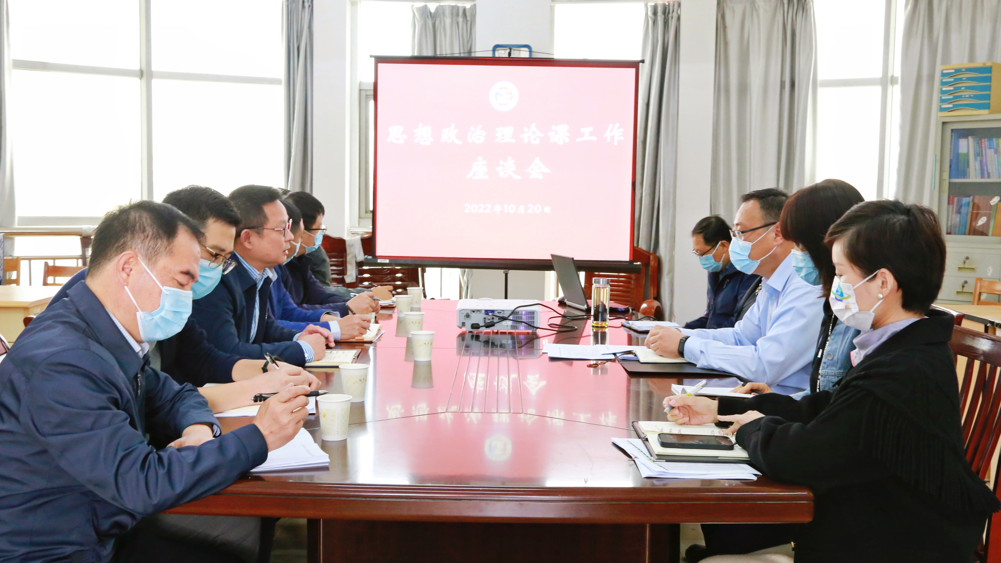 10月20日下午,黄色直播 在思政教研部会议室召开思想政治理论课工作座谈会。党委书记、政府督导专员孙雷、党委委员、副院长江爱华,党群工作部、学工部、教务处、人事处主要负责人和思政教研部部分教师参加了座谈会。