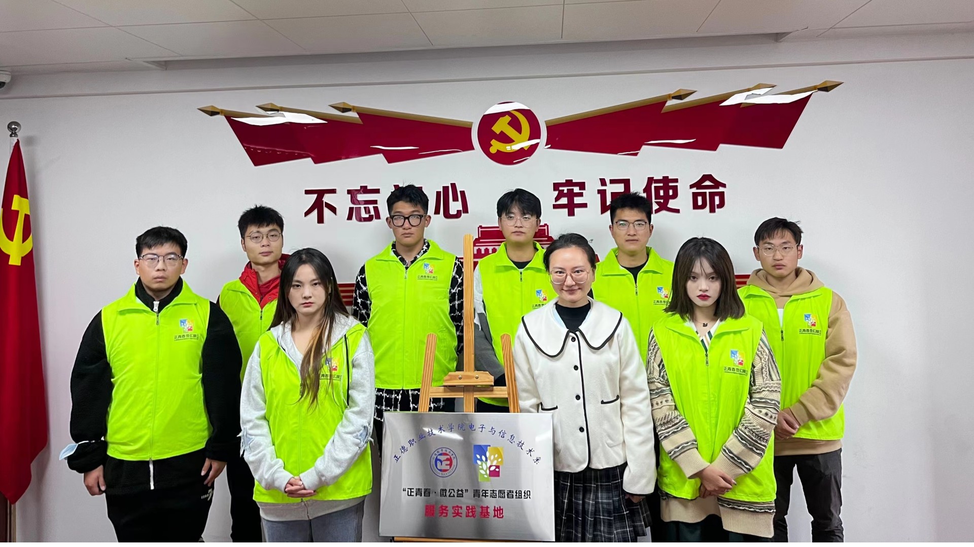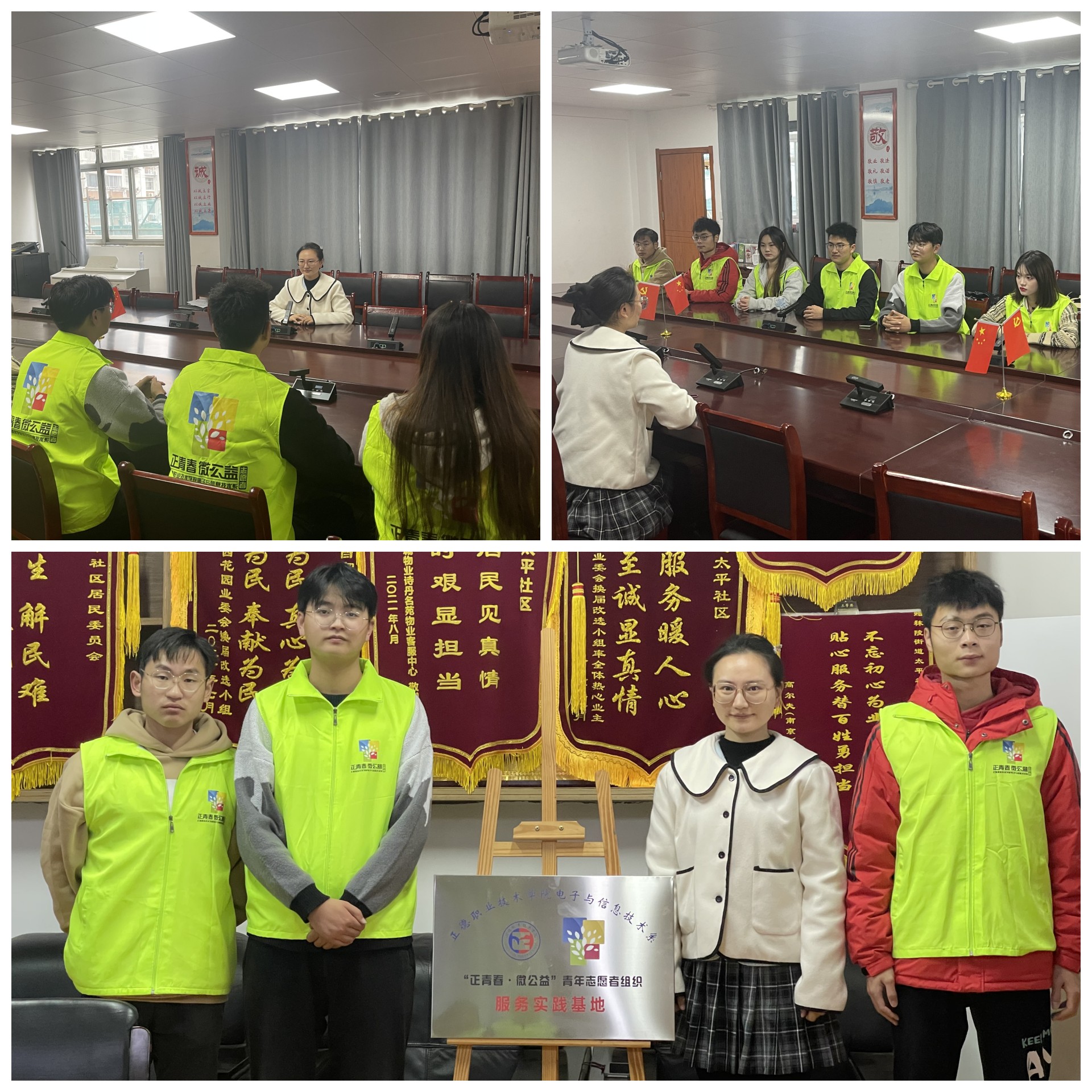 为全面贯彻党的二十大精神,深入学习贯彻习近平新时代中国特色社会主义思想,引导大学生力量走进社区、服务社区,为基层社区治理创新注入“青智慧”和“青动力”,11月19日下午,电子与信息技术系团总支学生会成员赴秣陵街道太平社区进行“大学生志愿服务基地”挂牌仪式。太平社区副主任邓玉萤出席了本次挂牌仪式。