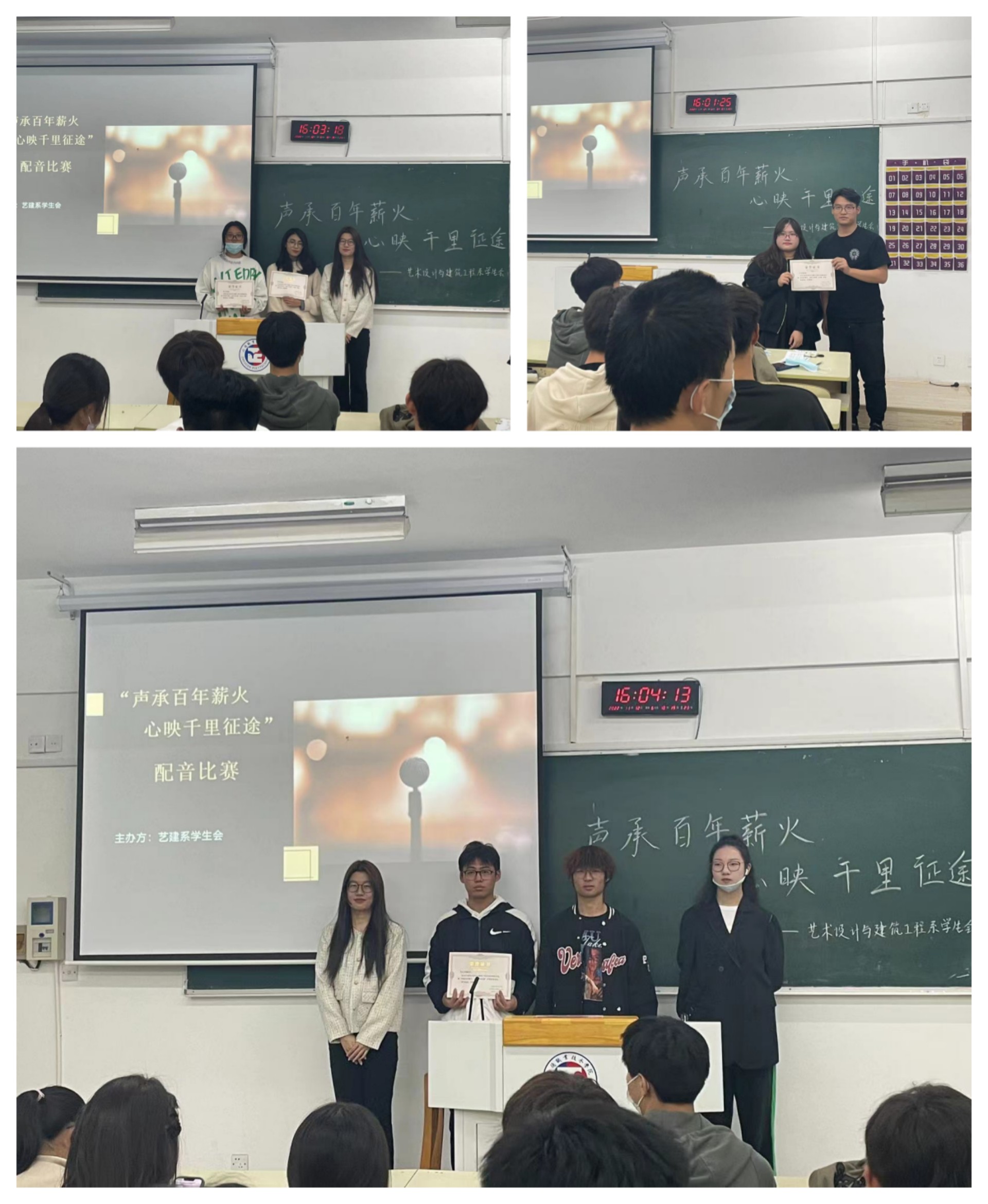 为了丰富同学们的课余生活,提高团队合作能力,黄色直播 艺建系学生会举办了“声承百年薪火,心映千里征途”为主题的红色经典配音大赛,比赛于2022年11月21日在2206教室举办。本次比赛特邀院新闻媒体中心主任吴宋俣同学做主评委,艺建系学生会秘书部部长周涵同学及其他各班学生代表现场投票打分。