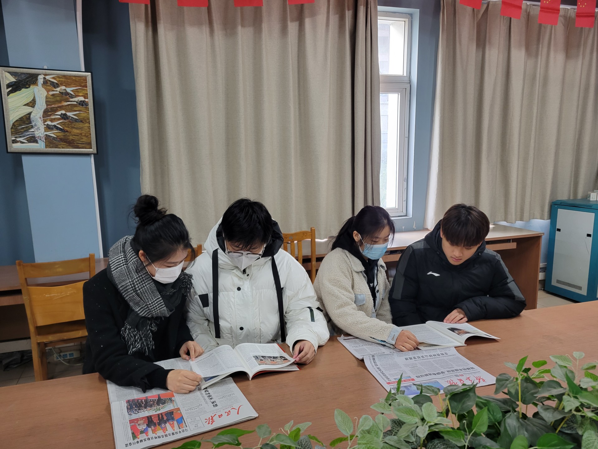 同学们认真阅读近期图书馆馆藏的《人民日报》和《求是》周刊,并交流发言,谈了各自的学习心得体会。