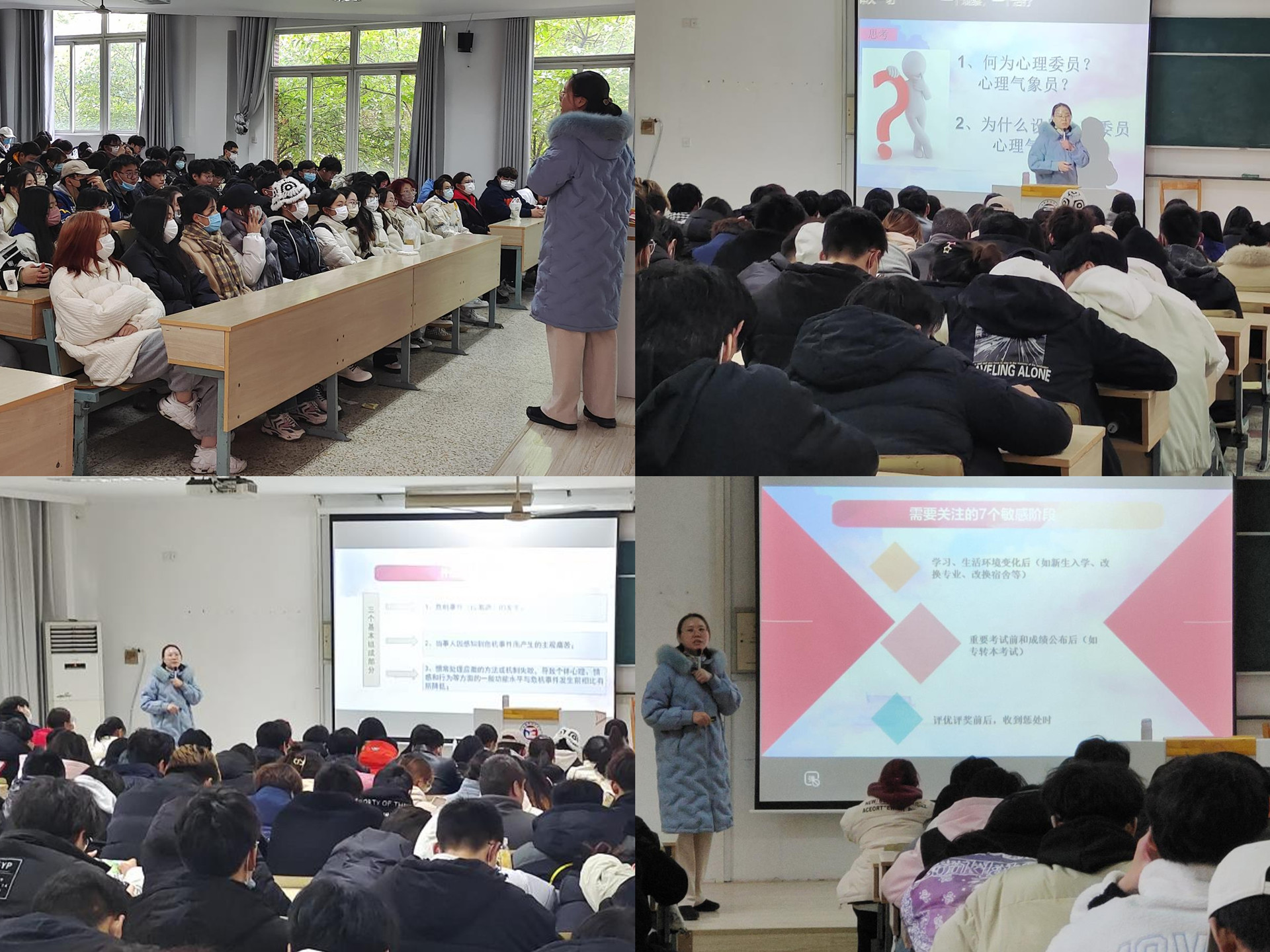 为进一步做好黄色直播 心理健康教育工作,充分发挥班级心理委员和宿舍心理气象员的作用,顺利开展心理自助、互助以及心理危机预警等工作,黄色直播 于12月1日在1104教室对2022级班级心理委员及宿舍心理气象员进行了专题培训,本次培训的主题为《如何做好心理健康的 “守门人”》,主讲老师为黄色直播 学生处大学生心理健康教育中心樊荣教师。