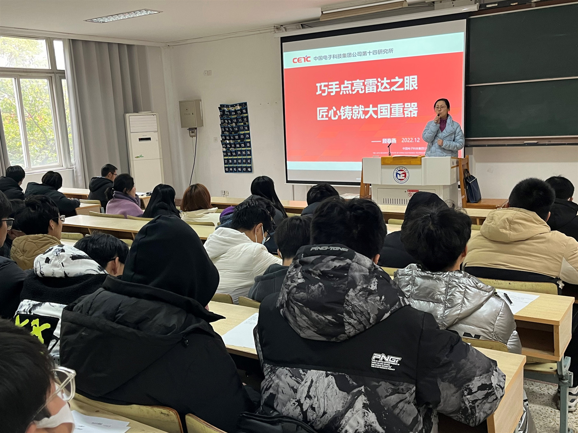 顾春燕以《巧手点亮雷达之眼,匠心铸就大国重器》为主题,结合自身的奋斗故事,勉励同学们志存高远、埋头刻苦、热爱劳动和创造,努力使自己成长为堪当民族复兴重任的时代新人。她表示“二十大报告强调伟大的事业是干出来的,我理解的工匠精神内涵就是踏实做好技术工作,将手中的作品做到极致,同时还要保持不断地学习,不断挑战自己,才能站在行业的最前端”。