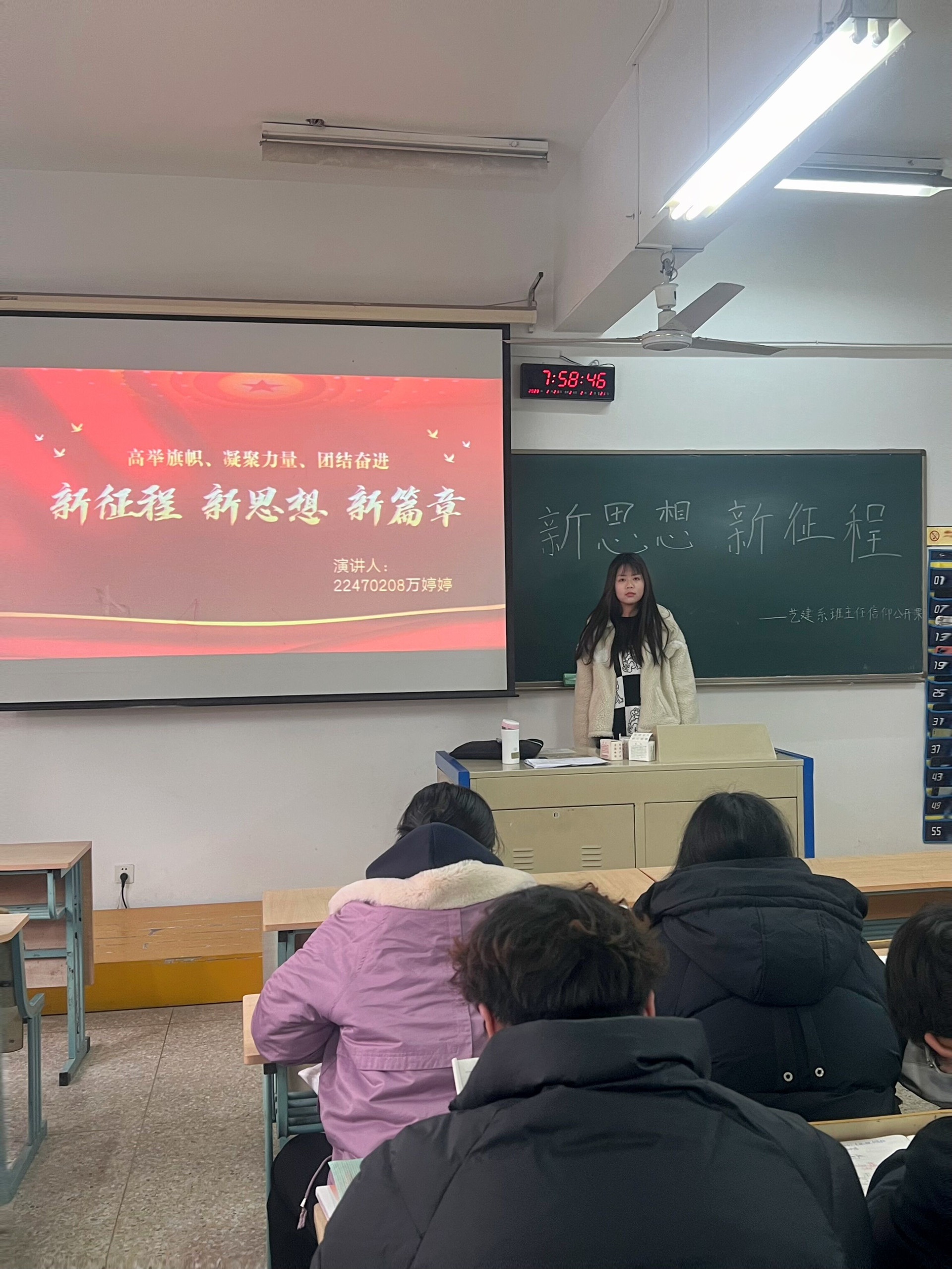 为学习宣传党的理论知识,认真学习与发扬二十大思想,努力践行班主任制度。艺术设计与建筑工程系工程造价全体团员于2月20日上午8点在9105教室开展了“新征程、新思想、新篇章”信仰公开课活动。参加本次活动的有辅导员王家甲、班主任徐冬梅。