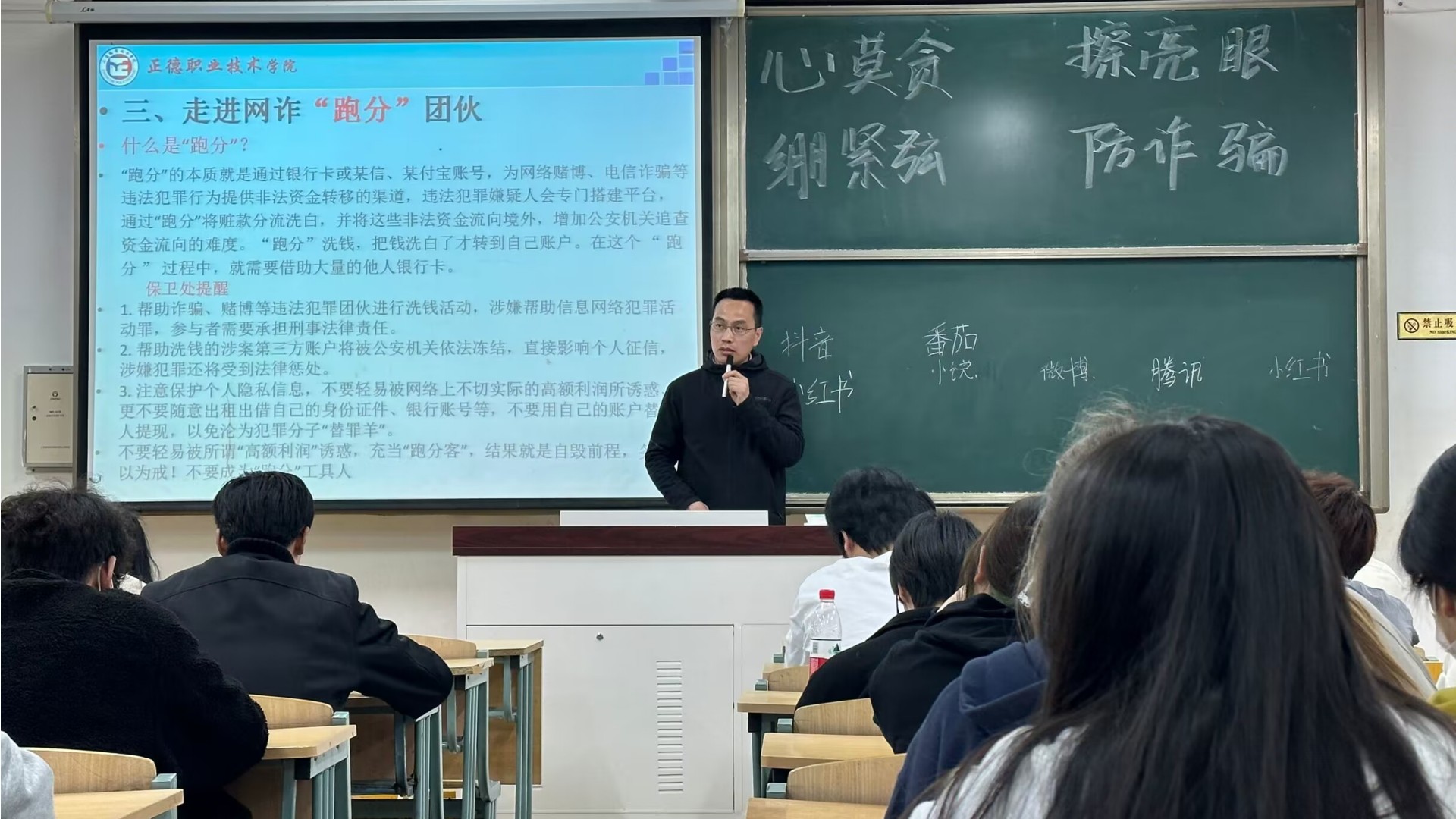 陈宏波在发言中提出,社会上的诈骗事件层出不穷,有很多专门针对在校大学生的诈骗行为,在校学生必须提高警惕,保障自身人身财产安全。希望每个大学生都能具备一定的防范意识,减少诈骗行为的发生,营造良好的校园环境。