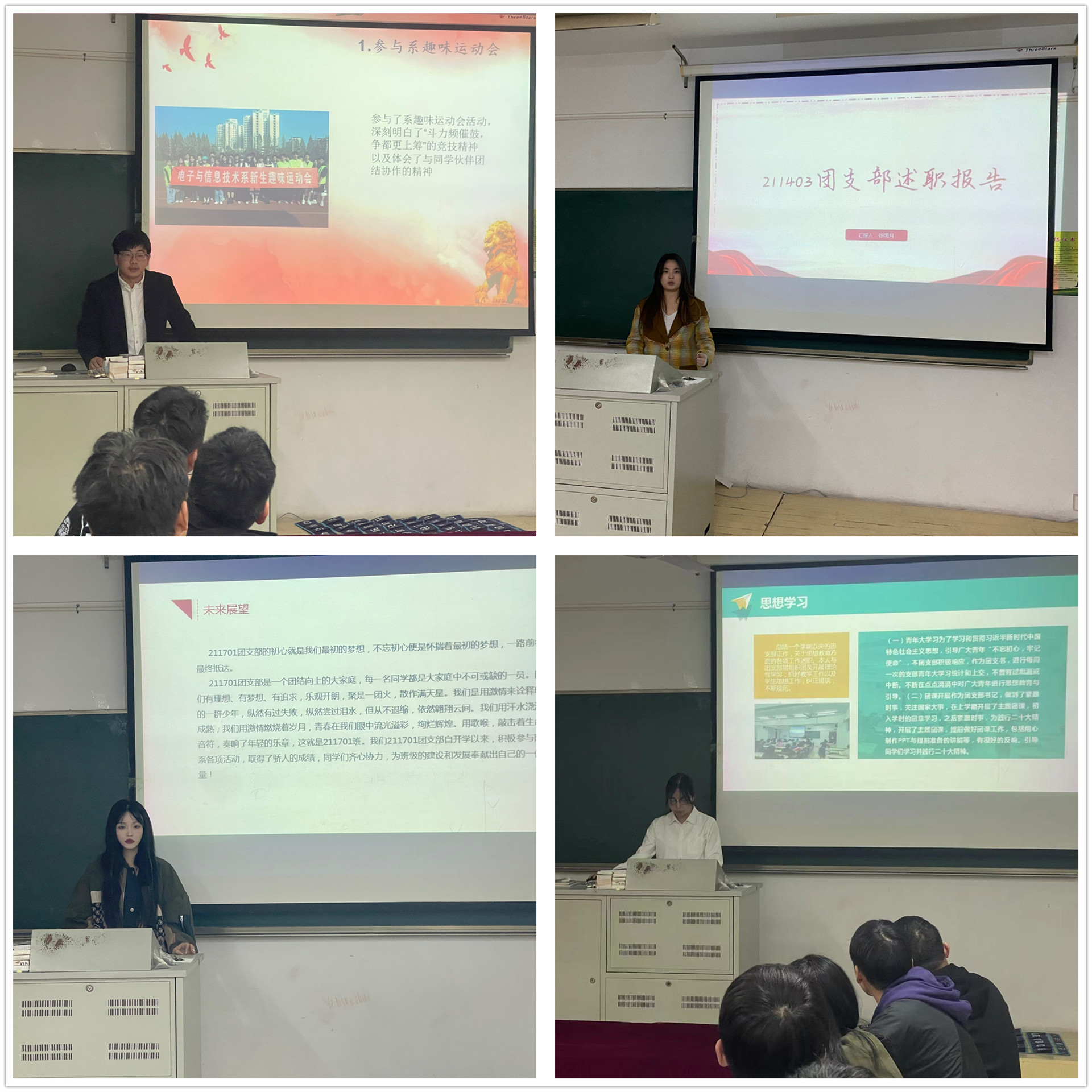 培训结束后,由团支书代表向团总支书记现场述职,他们总结了上一学期的工作要点,分析了自身存在的问题与不足。他们表示,在今后会更加积极工作,为电信系团学工作发展凝聚更广大的青春力量,把团支部建设得更加优秀。