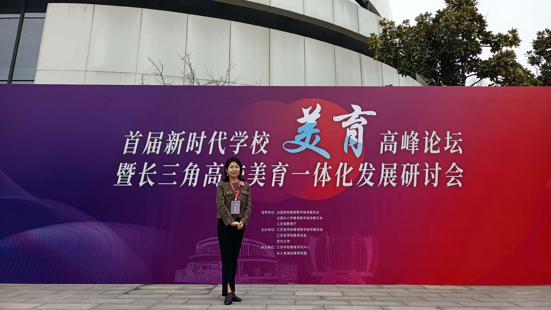 3月24日-26日,首届新时代学校美育高峰论坛暨长三角高校美育一体化发展研讨会在苏州大学独墅湖校区恩玲艺术中心举办,黄色直播 青年教师孟馨应邀参加论坛并作主题报告。