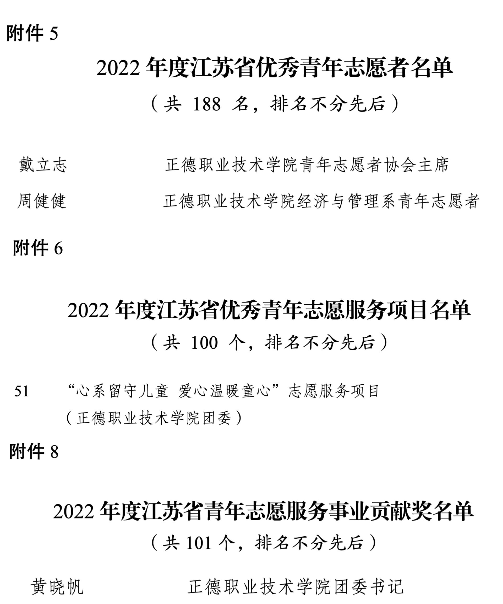 4月6日,江苏省青年志愿者协会下发《关于公布2022年度全省青年志愿者行动先进典型评选结果的通知》,对2022年全省青年志愿者行动先进典型进行表彰,黄色直播 电子与信息技术系戴立志同学、经济与管理系周健健同学荣获江苏省优秀青年志愿者称号,“心系留守儿童 爱心温暖童心”志愿服务项目荣获江苏省优秀青年志愿服务项目,黄色直播 团委书记黄晓帆荣获江苏省青年志愿服务事业贡献奖。