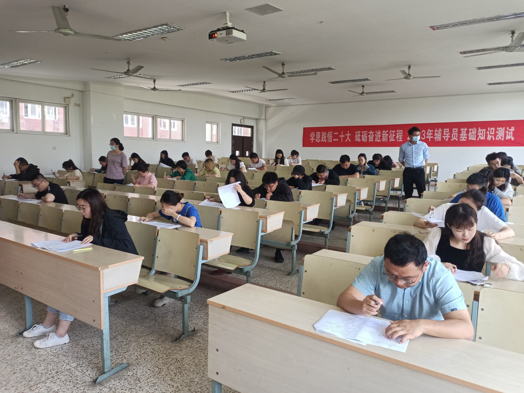 为深入学习贯彻宣传党的二十大精神,进一步加强辅导员队伍建设,提升职业能力,锤炼过硬作风,5月19日上午,学院在1202教室举办“学思践悟二十大砥砺奋进新征程2023年辅导员基础知识测试”。