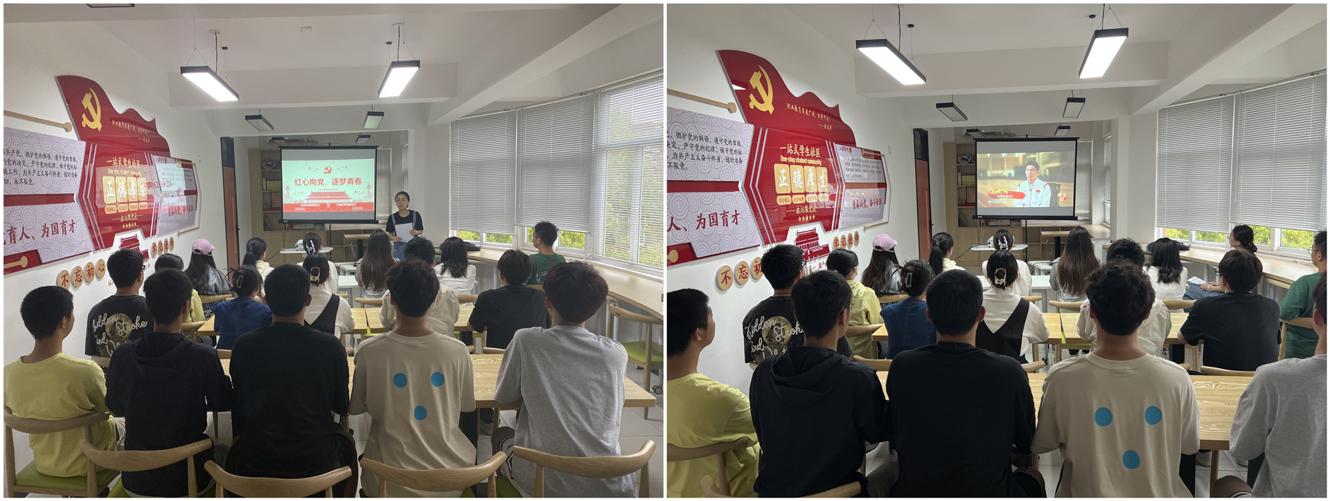 在学院“一站式”学生社区党团活动室,电子与信息技术系党支部组织委员刘敏婧以“红心向党,逐梦青春”为主题,带领大家深入学习习近平总书记给中国农业大学科技小院的学生重要回信精神,“自找苦吃”这四个字,习近平总书记曾不止一次提到过,这四个字不仅是总书记对自己的要求,也承载了总书记对新时代青年的殷切期望。她要求入党积极分子和学生骨干们把“吃苦在前、奉献在前、实干在前”融入实际学习与工作中,要带头创建良好的宿舍氛围,营造“一人带动一个宿舍, 一个宿舍带动一层楼,一层楼带动一栋楼”的良好风气和积极向上的宿舍文化。随后全体参会人员集中观看了《榜样7》专题节目,追寻“冬奥会闪亮的星”武大靖的步伐,他冰上竞技当仁不让,为国争光初心不改永葆党员初心,同学们纷纷表示要以榜样为引领,在青春的赛道上奋力奔跑。