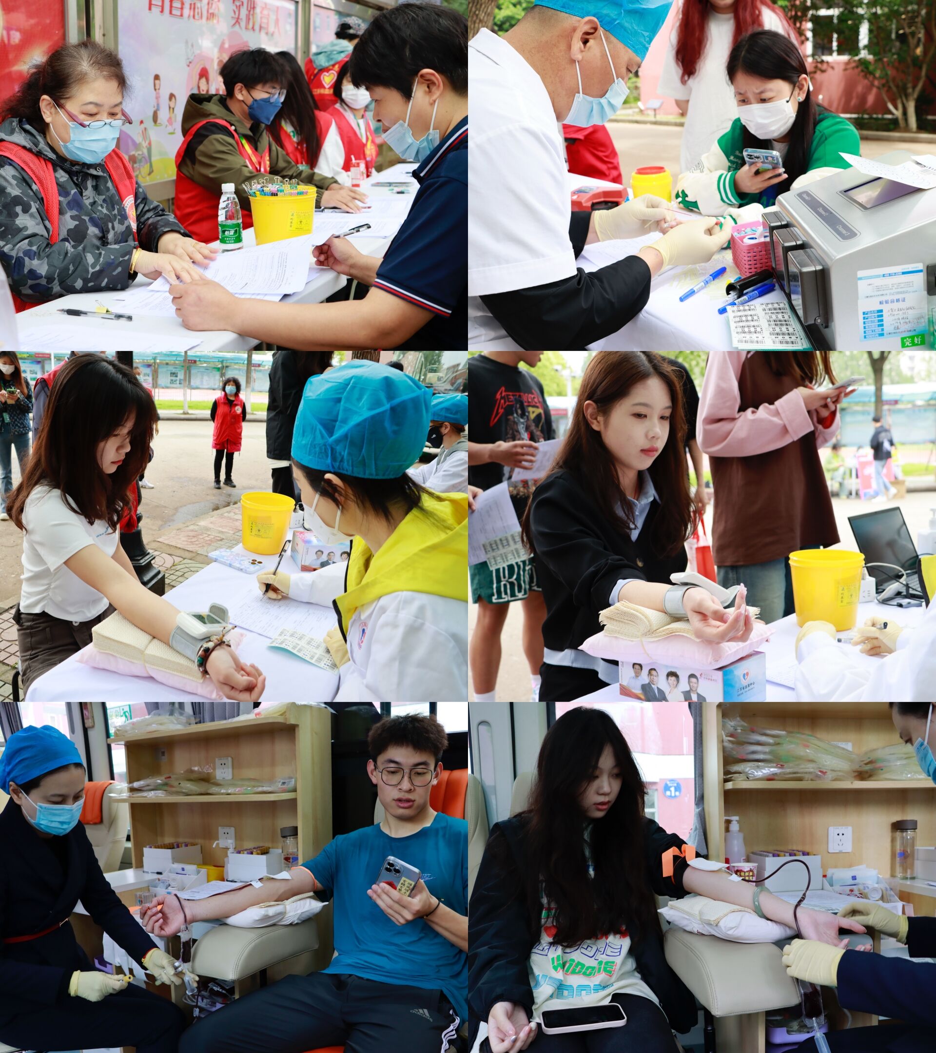 在采血现场,同学们井然有序地排队、填写信息、测血、采血,一袋袋殷红的血液涌动着生命的希望,凝聚着同学们的爱心。医护人员耐心地回答同学们的疑问,帮助同学们缓解紧张的情绪,不厌其烦地提醒每一位同学献血后的注意事项。“人生就该有这样一次经历,让我们一起用血液去汇聚爱!”“我已经不是第一次献血了,能帮助别人挺好的!”“我们年轻又强壮,为社会献出一份爱心,这是青年大学生的责任和义务。”“给组织活动的志愿者和医生加油点赞!”献完血的同学们在休息时这样热议着。