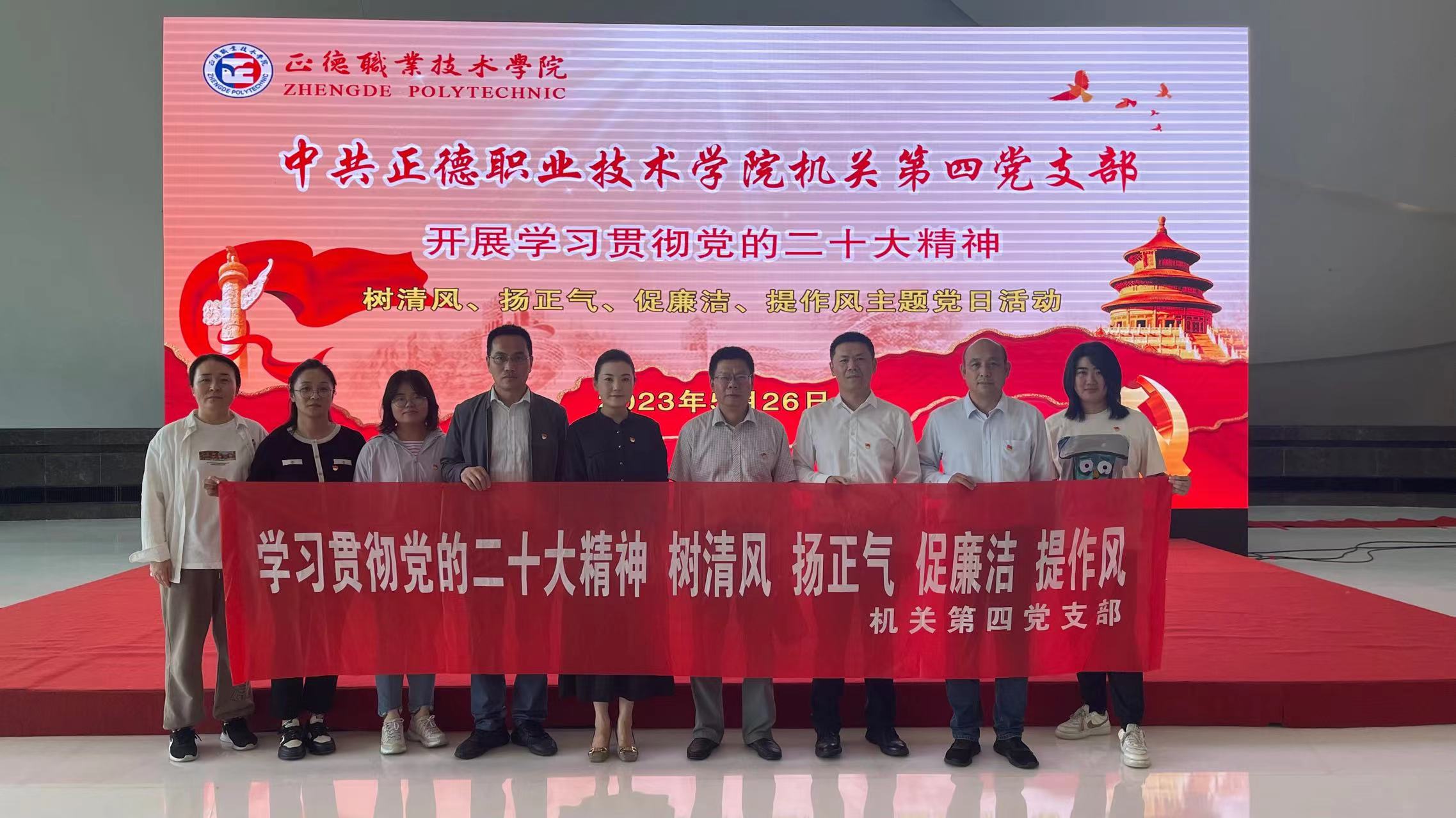 为深入学习贯彻党的二十大精神,引导党员干部坚定理念信念、筑牢拒腐防变的思想,提升爱岗敬业的工作作风,机关第四党支部以“树清风、扬正气 、促廉洁、提作风”为主题,积极开展主题党日活动。