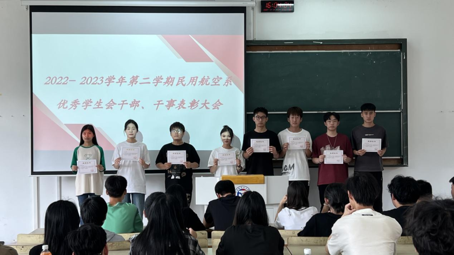最后陈瑶对大会进行总结。她对获奖个人表达了衷心的祝贺,肯定了过去一年里民航系学生会取得的各项成绩,向大家提出了三点希望:一是不忘初心,坚定不移跟党走。高举习近平新时代中国特色社会主义伟大旗帜,全面贯彻党的二十大精神,为全面建设社会主义现代化国家、实现中华民族伟大复兴的中国梦努力奋斗;二是坚定理想,传承奋斗担当。当代青年生逢其时,一定要牢固树立远大理想,树立正确的世界观、人生观、价值观。志存高远,正己修德,争做栋梁;三是努力学习,勇于开拓创新。民航青年要继承和发扬五四青年敢为人先、破旧立新的光荣传统,勇于探索,敢于创新,结合专业,不断攻克新的难关,攀登新的高峰,在志愿服务、创新创业中再创佳绩。会议最后学习传达全国学联第二十七届委员会第二次全体会议成果。