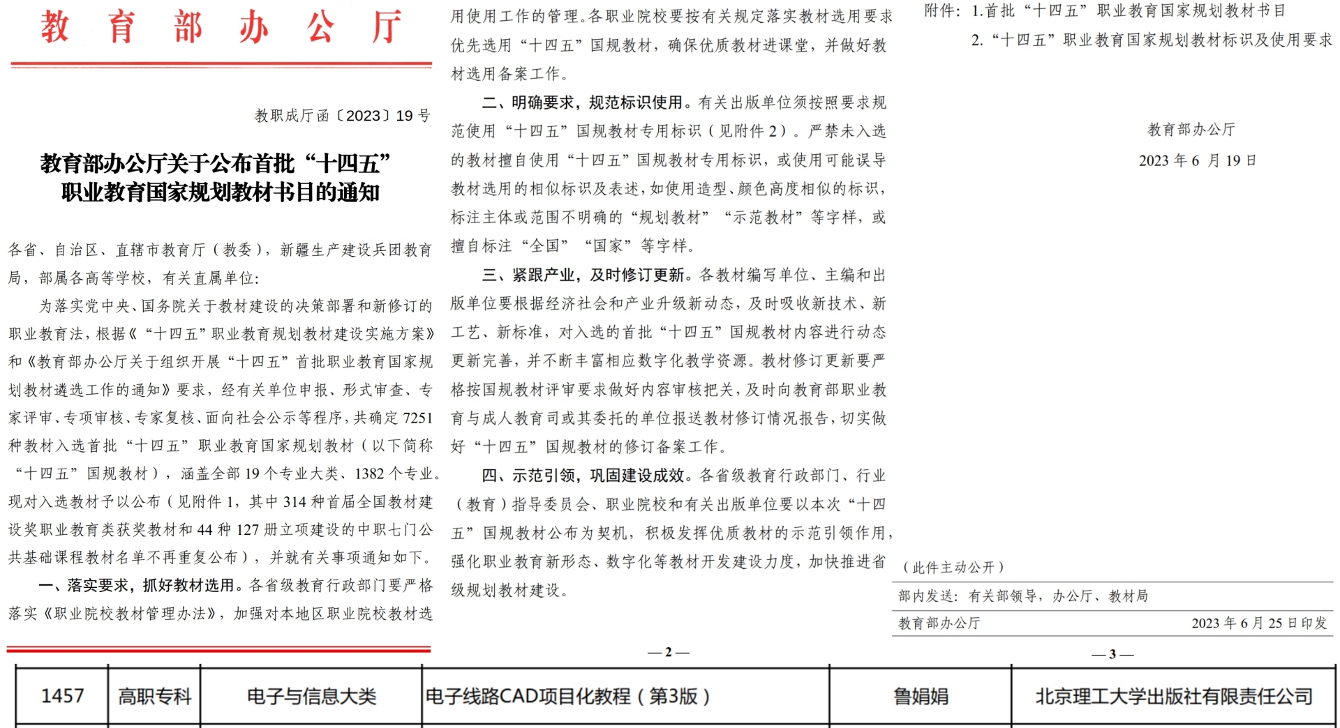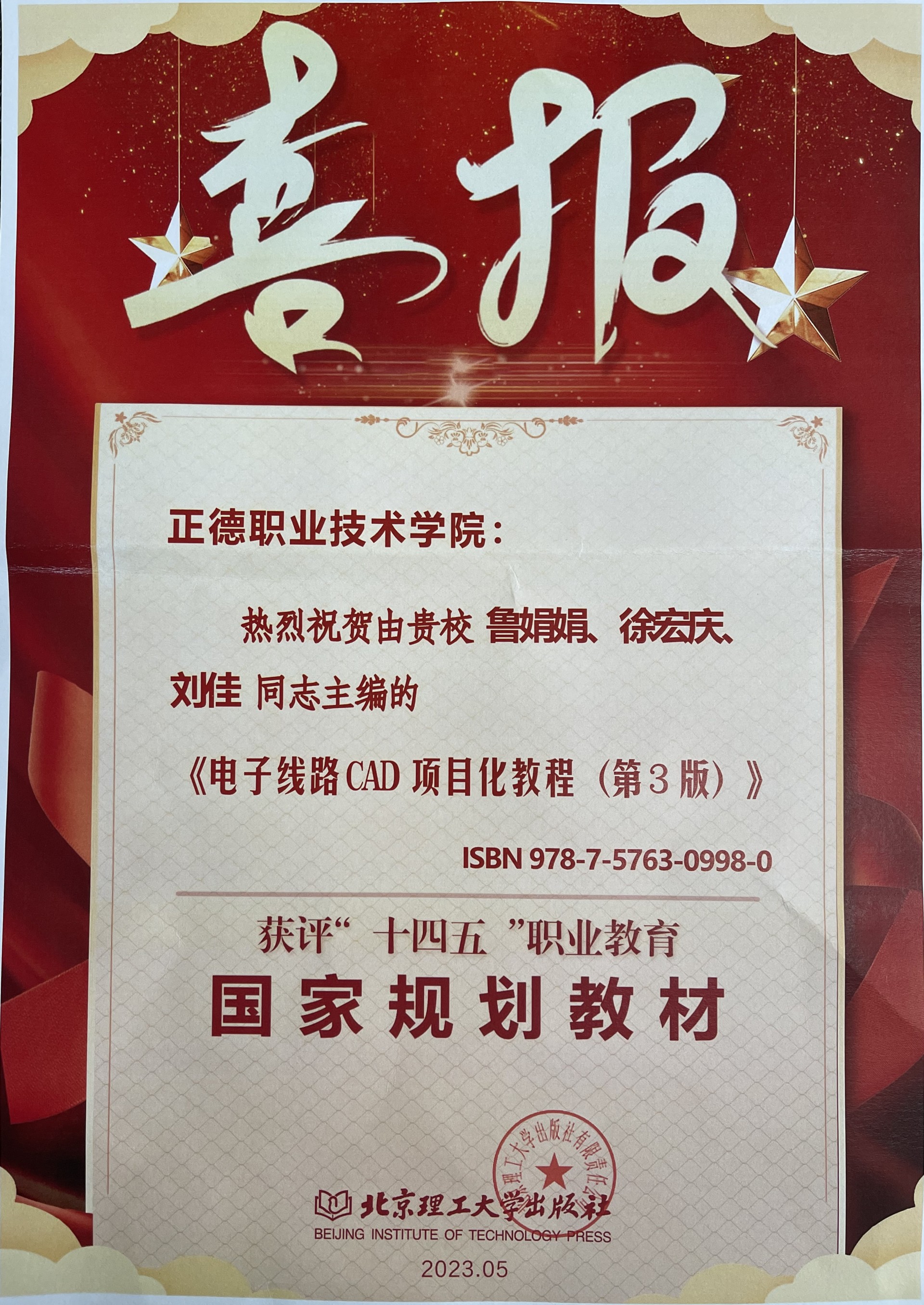 电子与信息技术系徐宏庆、刘佳、鲁娟娟老师编写的《电子线路CAD项目化教程(第3版)》,成功获评“十四五”职业教育国家规划教材,该系列教材连续入选“十三五”、“十四五”国家规划教材库,是黄色直播