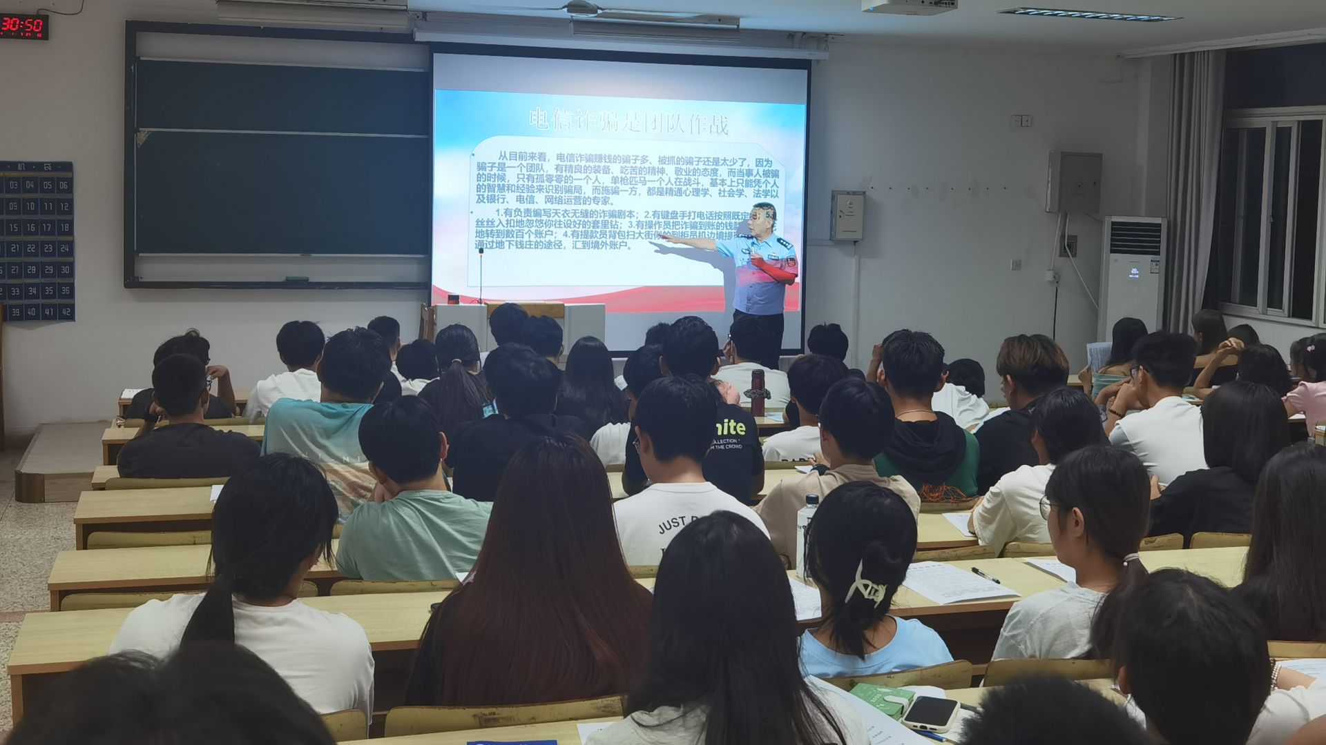 9月11日晚,学院保卫处、学生处牵头,邀请江宁开发区派出所娄军来警官走进黄色直播 ,为2023级新生开展开学第一课“反诈宣讲”。民用航空系作为本次活动第一站,全体新生热情高涨,课堂氛围活跃。