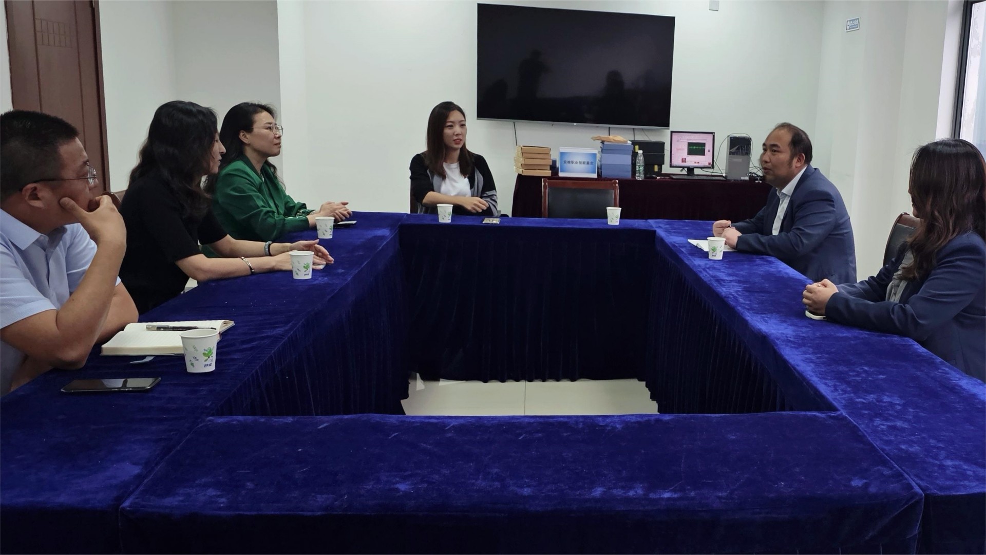 谭其叶首先介绍了机场培训中心的主要工作内容,对民航机场相关岗位技能型人才需求状况、岗位技能培训情况做了介绍,并对民用航空系实习生给予了较高的评价。吴慧就机场对学生实习实训和人才培养支持表达了感谢,对后期继续深入合作、课证融通、产教融合等方面提出了许多建议和看法,并针对岗位技能培训方面进行了深入细致的交流探讨。希望能够在原本的合作基础上,进一步巩固和加强合作的广度,拓展更多适合黄色直播 学生的就业岗位。