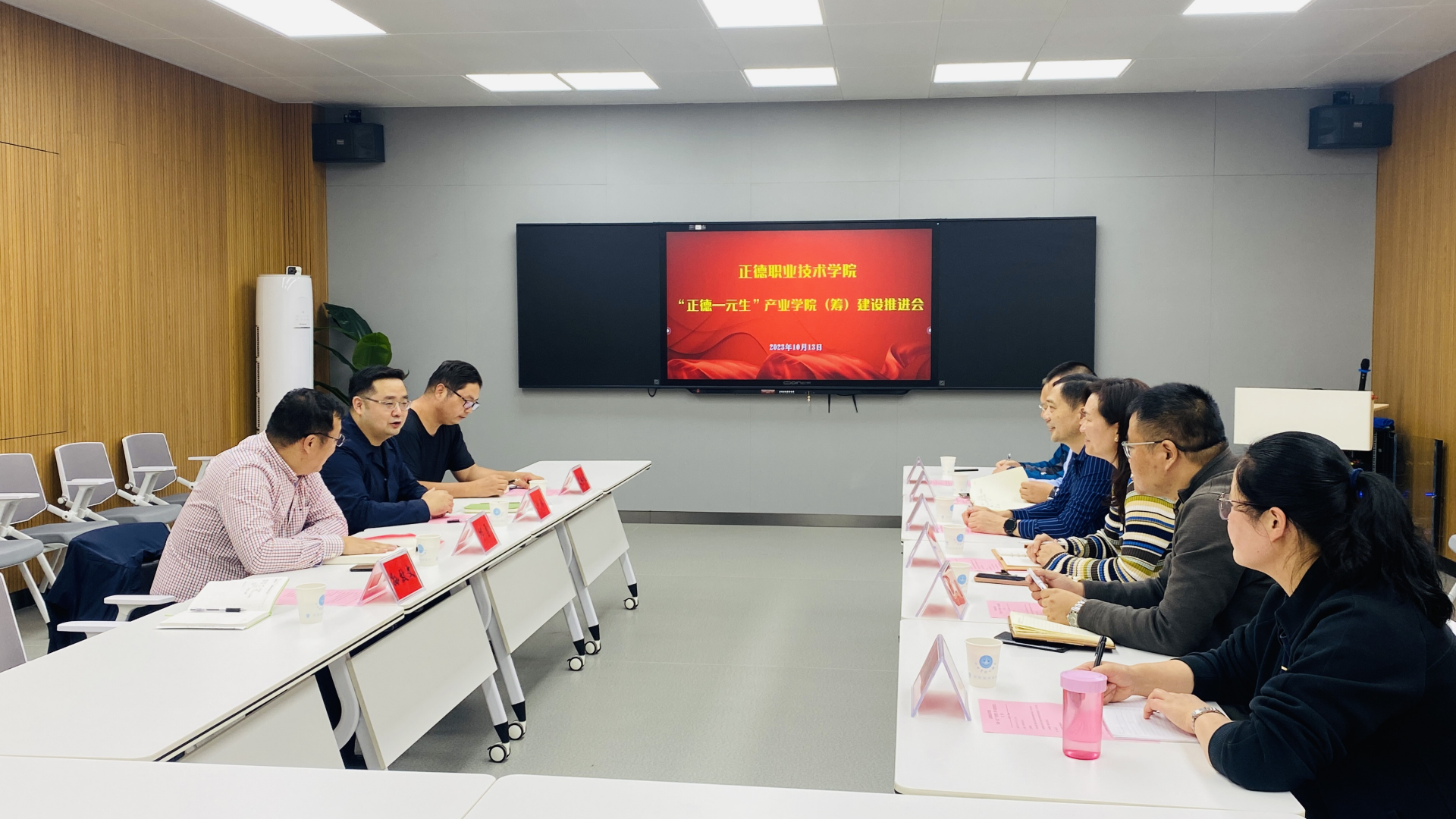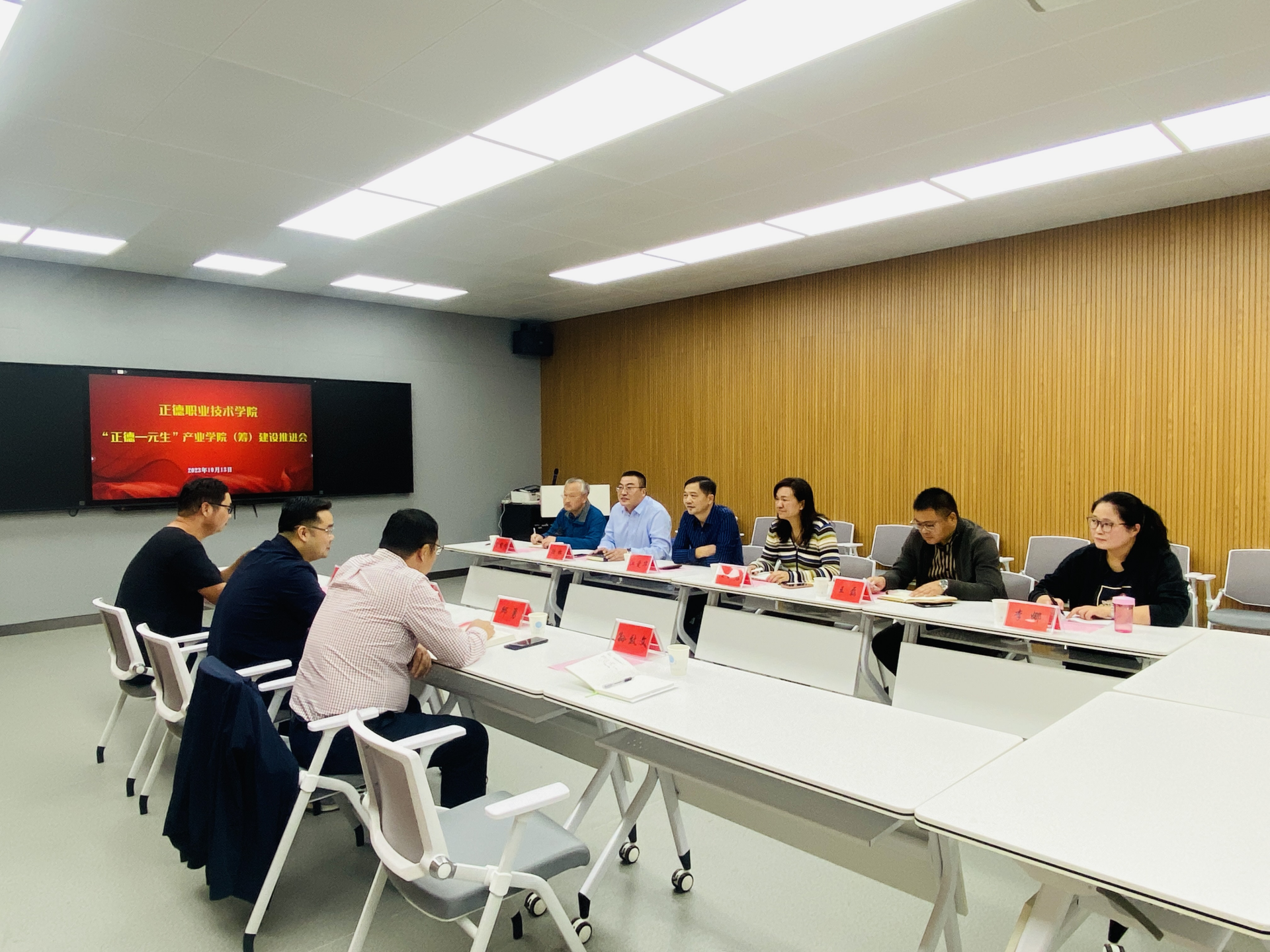 10月13日下午,“正德—元生消防技术产业学院(筹)”建设推进会在9106教室举行。南京元生消防工程有限公司总经理刘臻、副总经理邱勇,副院长江爱华、校企合作办主任陆松、汽车与机电工程系主任任丽君,企业相关部门负责人和系相关专任教师参会,双方就产教深度融合、校企协同育人进行了深入交流和研讨。