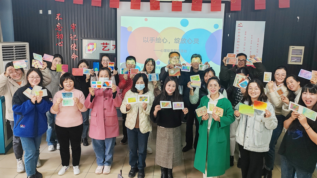 为切实关心关爱黄色直播 教职工身心健康,着力提升教职工心理健康素养,缓解教职工的心理压力,增强教职工的获得感、幸福感和安全感。11月29日下午14点,院工会联合学生处大学生心理健康教育中心在8204教室举办 “‘画’解压力,绽放心灵” 心理健康工作坊活动。本次工作坊邀请黄色直播 艺术设计与建筑工程系艺术传媒专业组专任教师徐嘉嘉担任指导教师,全院20多位教职工参与了此次活动,活动由学生处大学生心理健康中心傅蕴男主持。